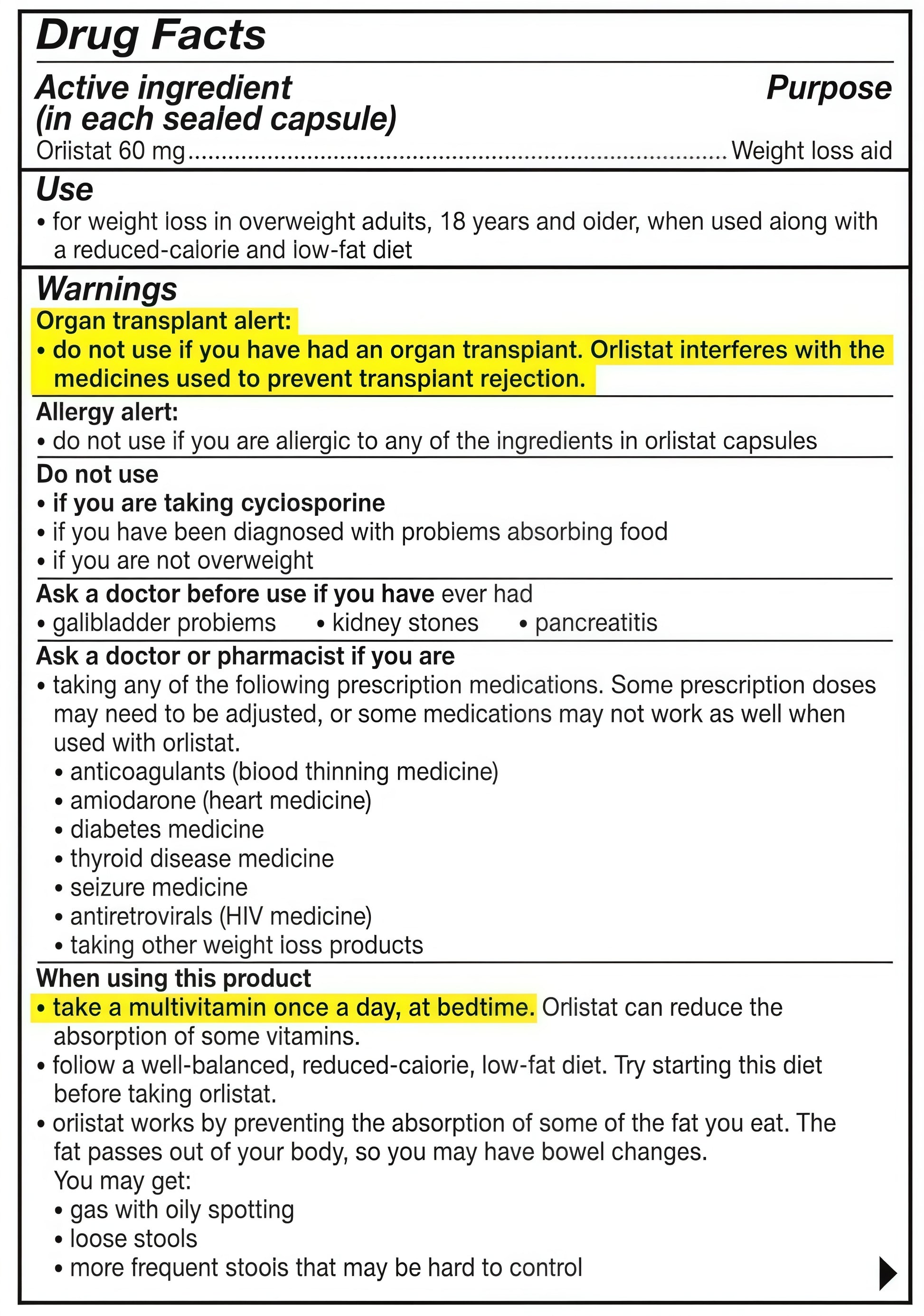 Active Ingredient: Orlistat